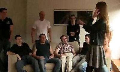 gangbang cagna in alto col tacco alto pantofole assetate di sborra