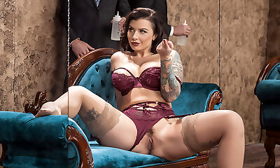 lussuosa moglie di superslut buxomy in ff nylons beccata da un grosso cazzo nero
